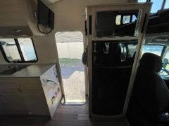 The large interior has an open walk-through area between the driver’s area and the main cabin