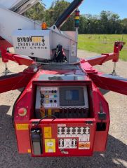 Features a 23m boom, 1.4m width, remote control, fly jib, and stinger